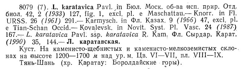 | Евгений Давкаев | Кстати, у Кармышевой отмечена только L. karatavica (каменисто-щебенистые вершины гор Даубаба и Машат), а у Иващенко - только L. talassica. |