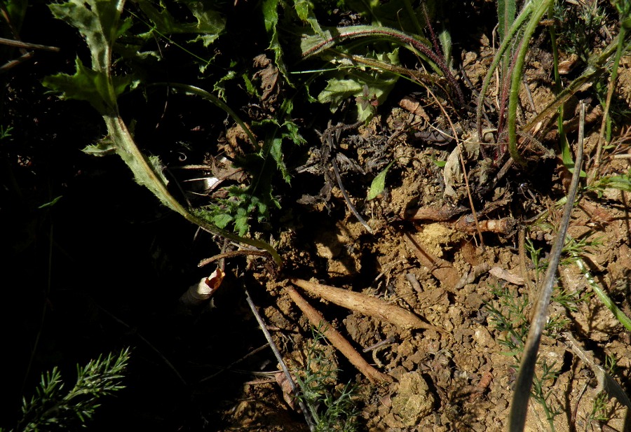 посмотрела ключи - если это вообще Cirsium, то может быть C. filipendulum Lange, у которого вроде бы всё-таки есть листочки на цветоносе, на найденных в инете снимках (на картинке в ключах листочков нет) или C. tuberosum (L.) Hill для которого я листьев вообще не нахожу. Различаются они вроде как шириной листочков обёртки, у одного 1-2, у другого 2-4. Не меряла А корни у обоих должны быть с клубнями. |