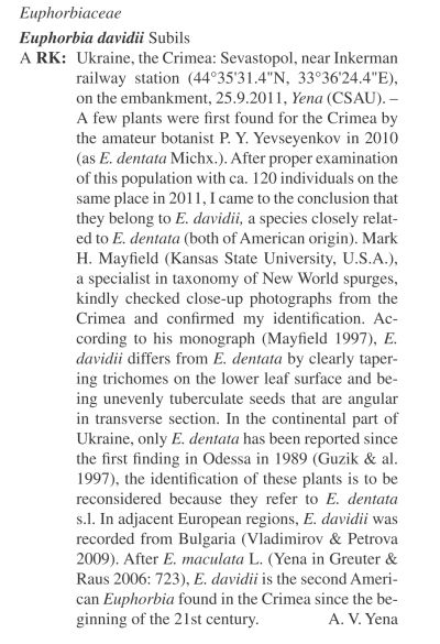 Euphorbia davidii Subils (семейство Euphorbiaceae)