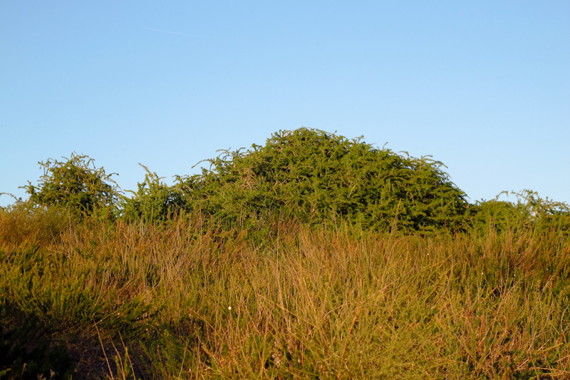 Цветущее и плодоносящее растение (на заднем плане) в сообществе с Artemisia monosperma (на переднем плане). Израиль, Шарон, г. Герцлия, высокий берег Средиземного моря. 11.12.2011.