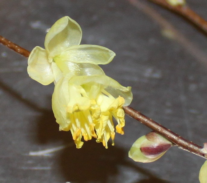 Часть ветки с распустившимся цветком и покоящейся почкой. Германия, г. Кемпен, в культуре. 21.03.2012.