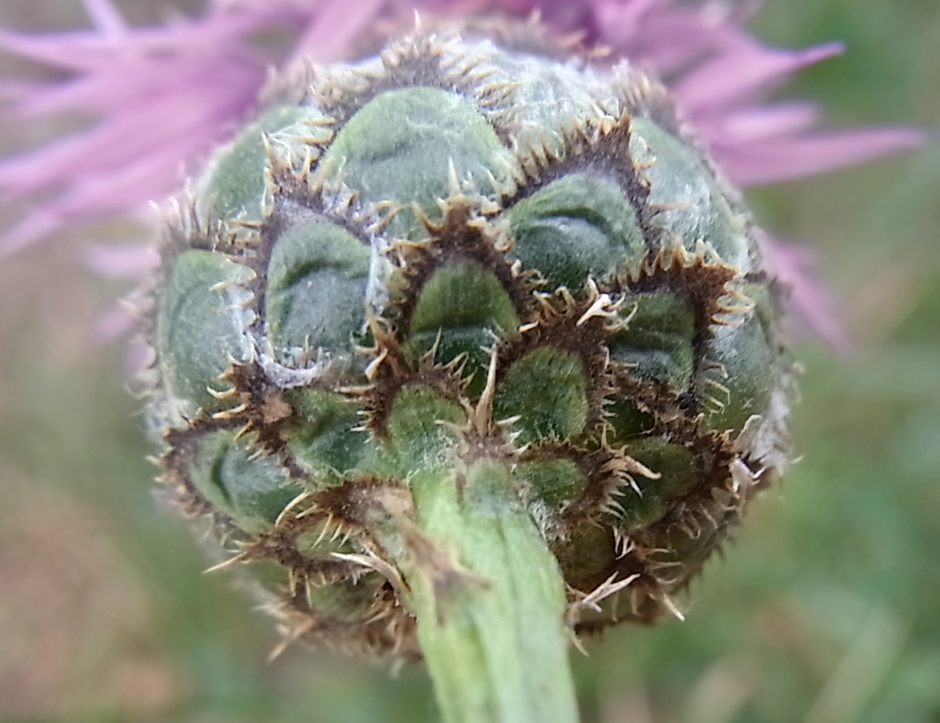 Вообще-то за местную скабиозу я держала совсем другой василёк, тот уж действительно шероховатый так шероховатый (как-нибудь выложу), и он встречается гораздо чаще. Этот же растёт как-то более локально, и пришёл мне на ум именно при рассматривании крымского S. apiculata.