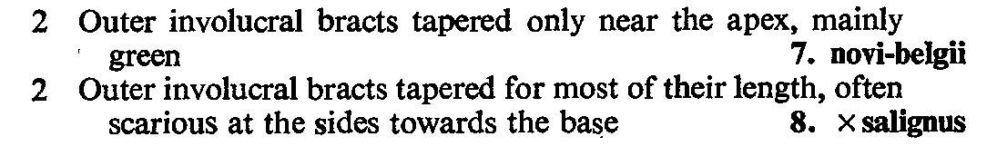 А по Stace не менее "четко" на S. salignum. Ну, если это большое зелёное есть листочки обёртки, то по ФЕЧ из пары salignum/novi-belgii чётко выходит S. novi-belgii. В этой группе полная каша! Проверял на европейских ботаниках, которые занимаются инвазионной биологией. После моих приставаний, что же за астры растут вдоль речки, некоторые, наиболее честные, признались, что не знают ![]() |
