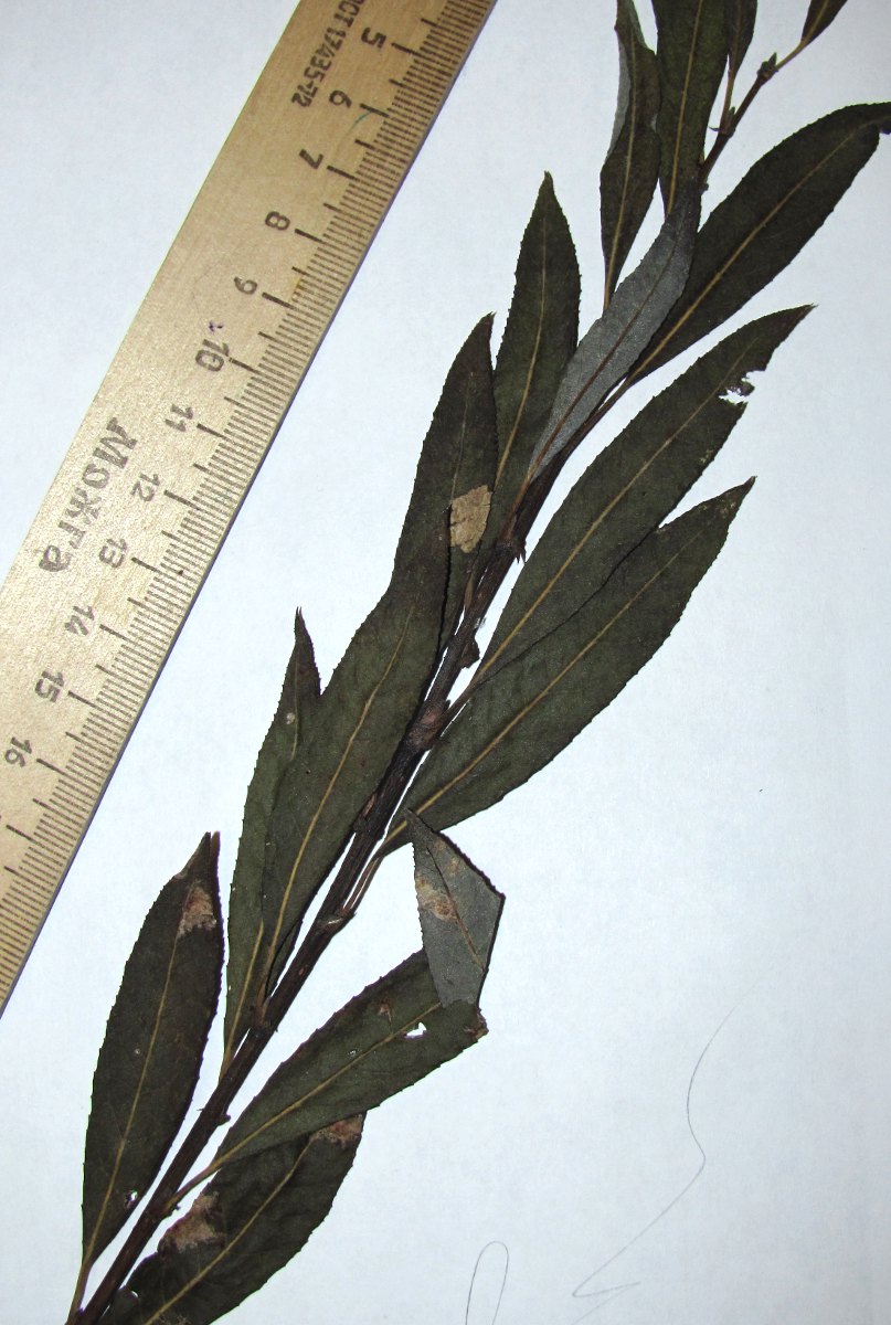 Верхушка побега; видны листья с обратной стороны. Архангельская обл., Вельский р-н, окр. пос. Усть-Шоноша, старые карьеры. 08.08.2012.