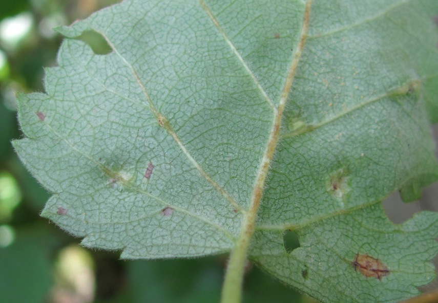 Часть листа с участками, пораженными, очевидно, грибом Taphrina betulae. Архангельская обл., Вельский р-н, окр. пос. Усть-Шоноша, сырой лес. 02.08.2012.