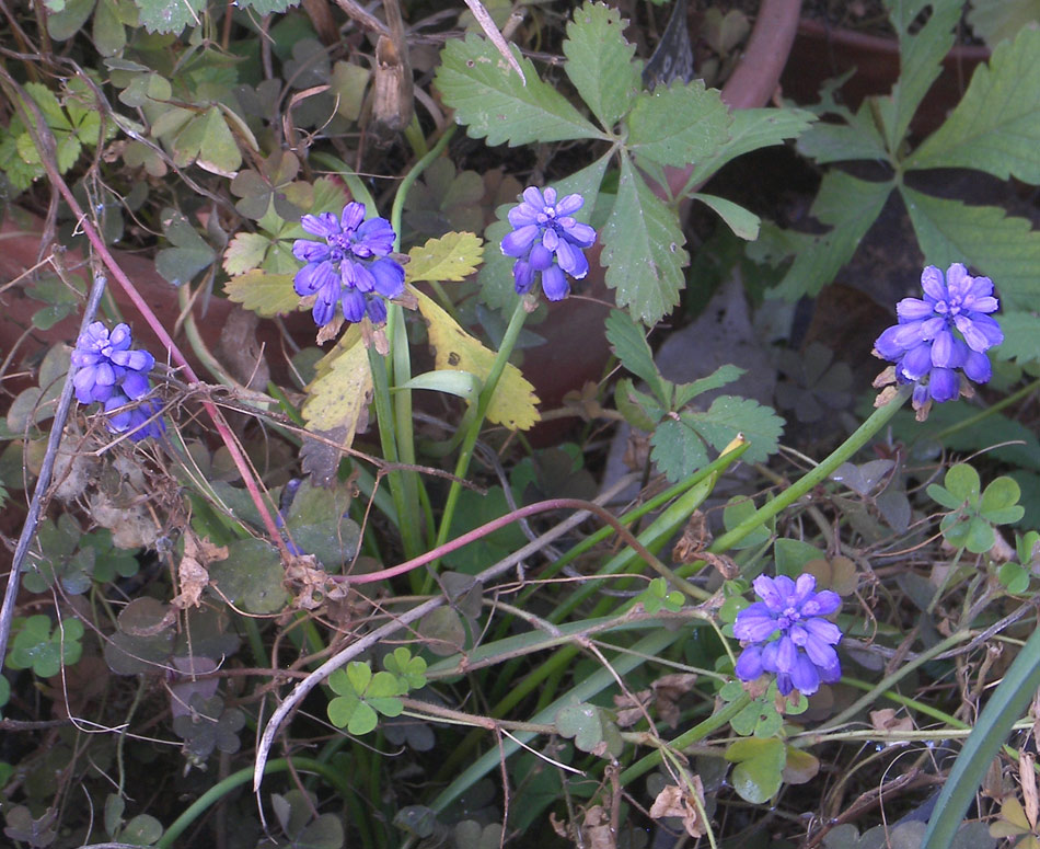 В культуре Muscari neglectum, как и Muscari armeniacum зимуют с проросшими, и хорошо развитыми листьями. |