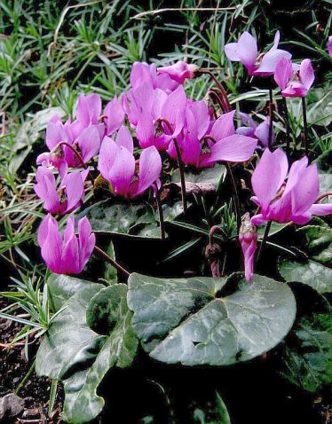 C. hederifolium - цветёт с сентября до декабря, цветки появляются до разворачивания листьев.