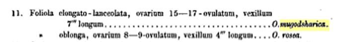 | Андрей Ковальчук | Замечу, что сам Бунге считал O. rosea и O. mugodsharica довольно близкими и разводил их так (см. вложенный файл). К сожалению, по фотографиям тяжело оценить абсолютный размер цветка, да и количество семян в плодах непонятно. Oxytropis.jpg |