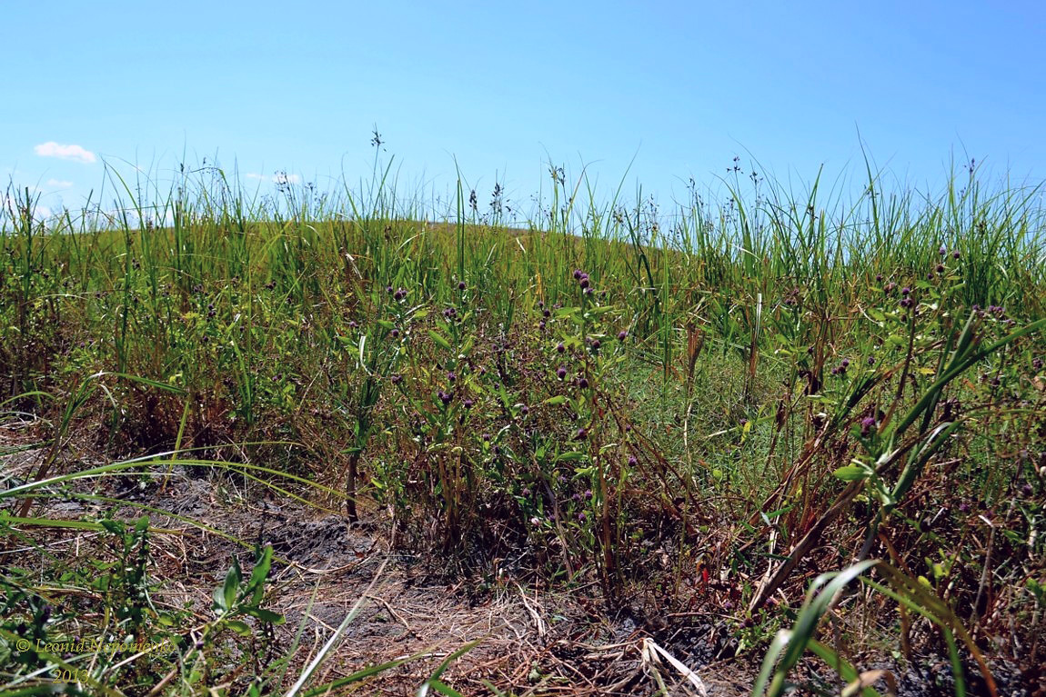 Цветущие растения. Астраханская обл., Володарский р-н, окр. с. Ямное, ООПТ "Бугор Змеиный", пойменный луг, обочина проселочной дороги (на заднем плане бэровский бугор Змеиный). 20.07.2013.