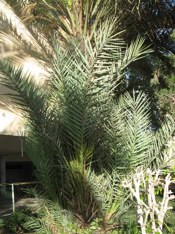 | Марина Рыбка | Другой "куст", с соседнего двора. Тоже нормальная финиковая пальма - сегодня уже видела плоды. Там уже оформилось несколько стволов. Может быть такое, что это куча сеянцев срослась вместе? или всё-таки прикорневая поросль? phoen_dact_3438.jpg |