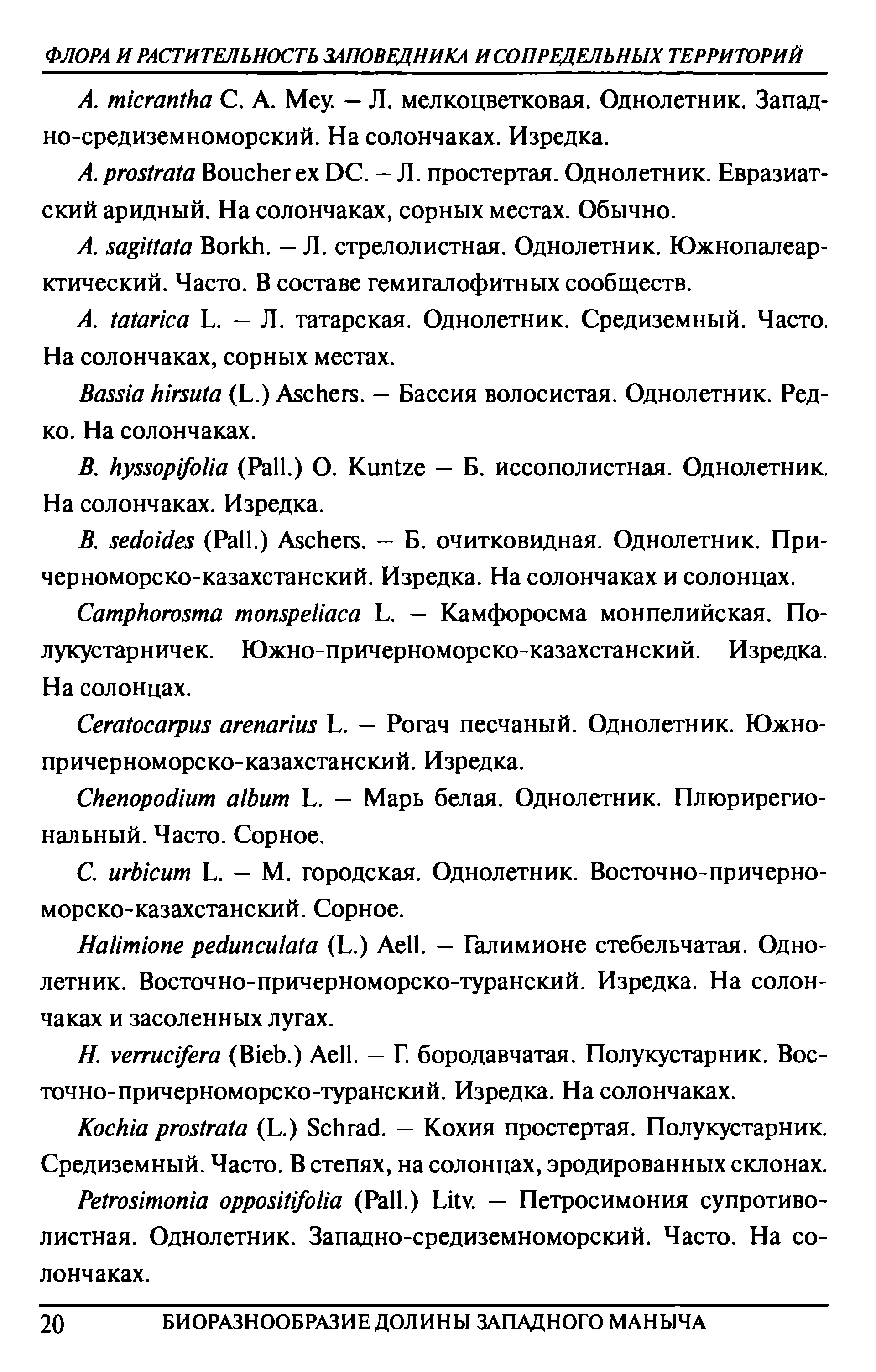 ; да и биота совсем не типична для Ростовской области, скорее для Астраханской и Западно-Казахстанской): Шмараевой+др. и Дёминой. Оба неполны видами и полны нестыковками, в системе растений тоже. Скажем, в цитируемом листе нет заносных древесных, отсутствуют некоторые астровые, норичниковые и яснотковые, и ещё 2 вида крестоцветных, а также не приводится массовый на солончаках Senecio noeanus, фото которого я опубликовал здесь. С кермеками и горцами тоже вопросы.