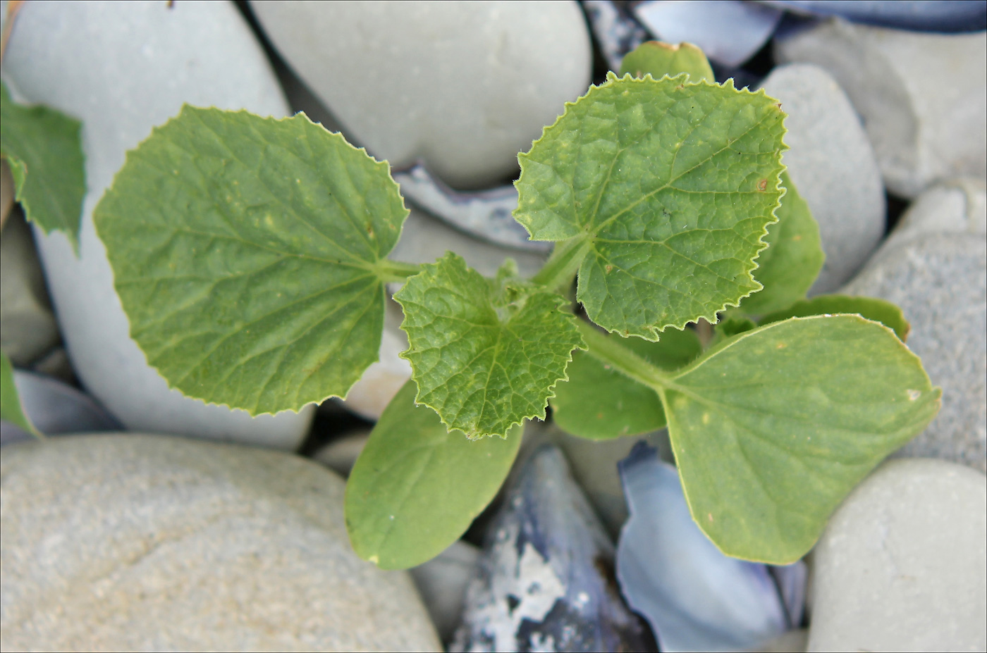 Ювенильное растение на галечном пляже. Черноморское побережье Кавказа, окр. Новороссийска, близ мыса Шесхарис. 13 октября 2013 г.