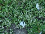 Цветущие растения с кормящимися боярышницами. Иркутская обл., Иркутский р-н, окр. с. Максимовщина, р. Иркут, на лугу у дороги. 11.06.2009.