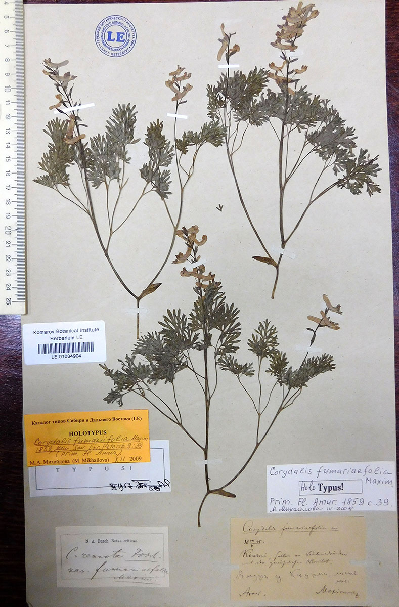 Отнесение к Corydalis fumariifolia растений именно с такими листовыми пластинками основано на типовом образце или же на каких-то иных соображениях? |