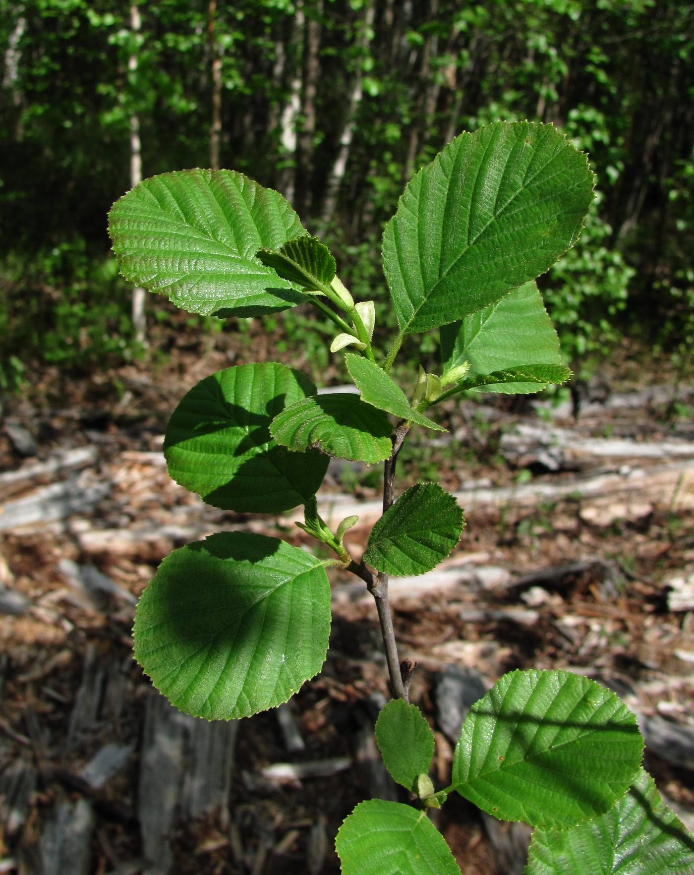 Часть ветви; листья с многочисленными галлами. Окр. Архангельска, заболоченный лес. 02.06.2014.