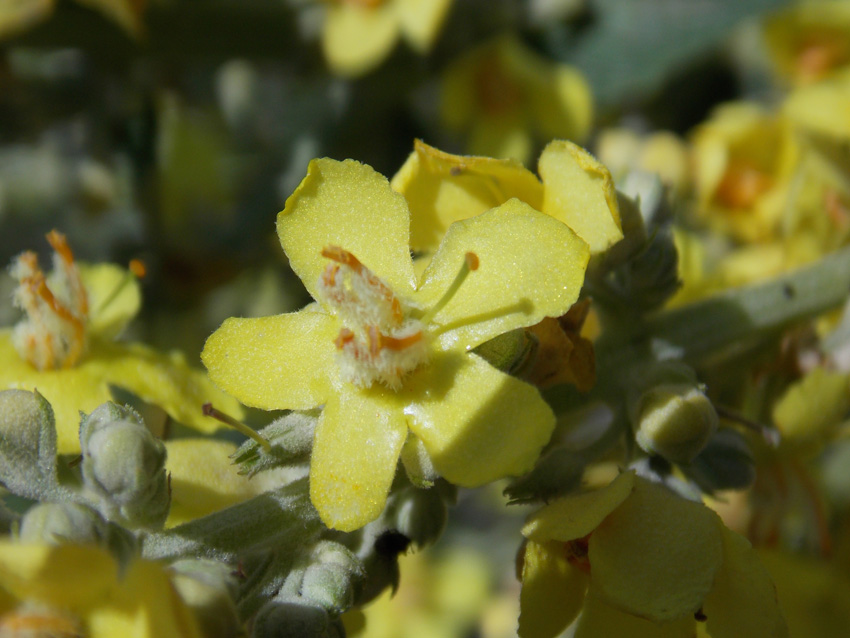 Если это не V.lychnitis, то какой? По определителям Зернова, Галушко, Косенко и флоре СССР на другие виды не выходит. Из похожих, растущих в нашем регионе, у V. marschallianum нити тычинок опушены фиолетовыми волосками, у V. pyramidatum аналогично + цветы на цветоножке. Прилагаемое фото не выкладывалось, чтобы не перегружать и без того переполненную папку V.lychnitis.Только это не V.lychnitis Коровяк мучнистый ф.jpg |