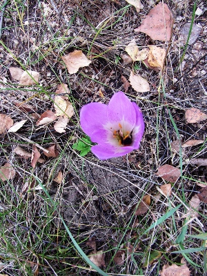 Вспомнила, что как-то видела похожий безвременник в другом месте в смешанном лесу, недалеко от дач.