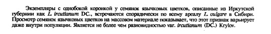 | Андрей Ковальчук | Вот, кстати, и ответ на мой вопрос из той же "Флорі Сибири": "В Сибири преобладает 2n = 36". Такое хромосомное число как раз характерно для L. ircutianum, у L. vulgare 2n = 18. |