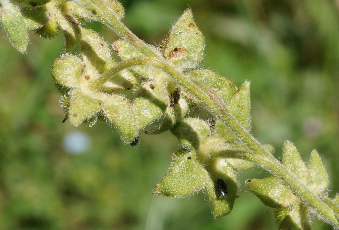 Часть соплодия (вид со стороны чашечек) с сидящими насекомыми. Восточный Казахстан, Кокпектинский р-н, 25 км в горы от с. Пантелеймоновка, 1000 м н.у.м., сопка. 16.07.2015.