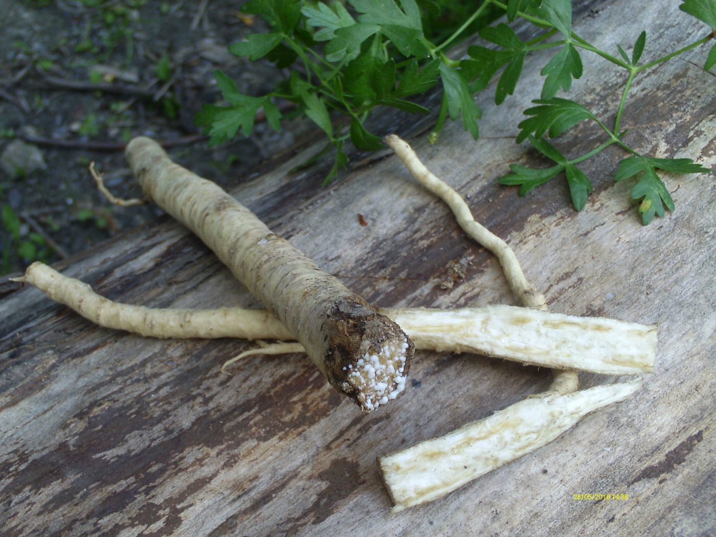 | Евгений Сидорчук | Сегодня выкопал это растение, корень вертикальный свело-бежевого цвета, в толстой части 15 мм. в длину 40-45 см. внешне похож на корень хрена.