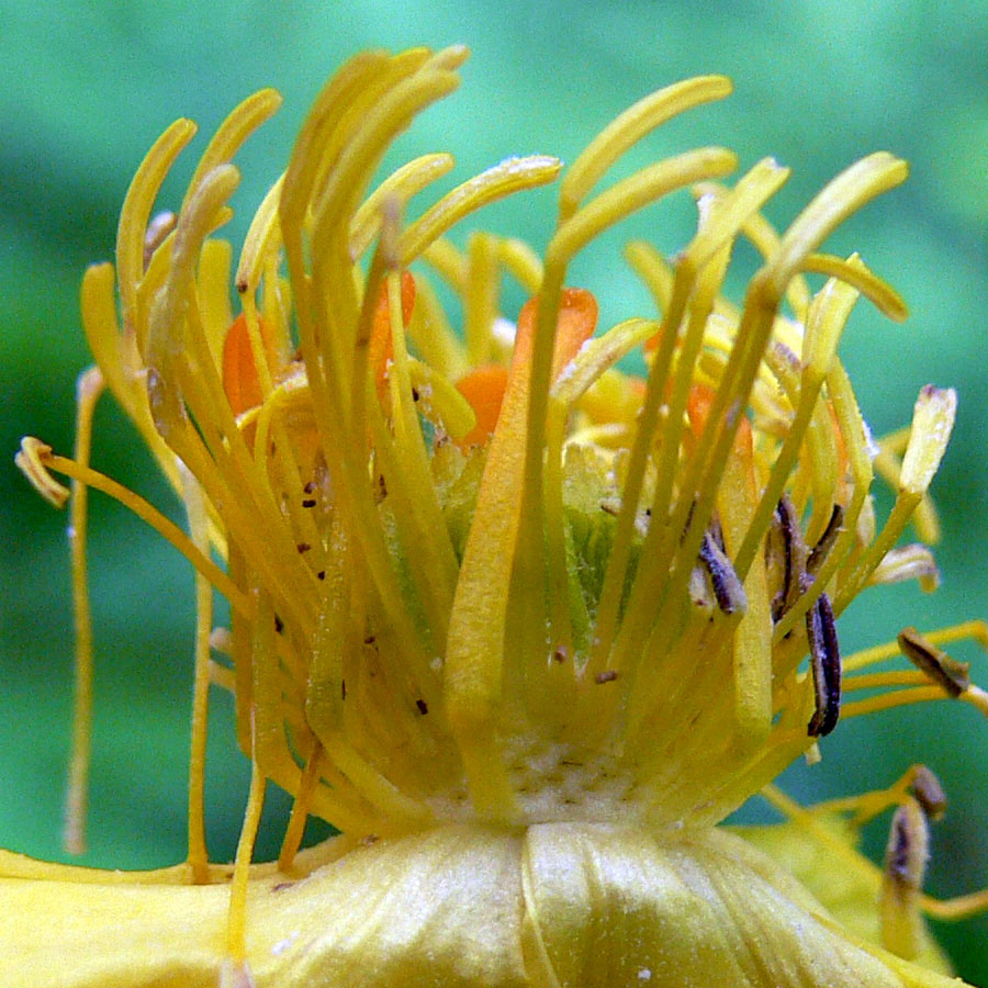 Лепестки-нектаринки жёлто-оранжевые, значительно короче тычинок; рыльце одного цвета с пестиками, зеленовато-жёлтые.