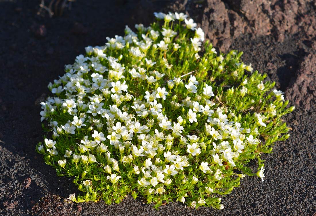 Плотноподушковидная куртинка цветущего растения. Камчатский край, Усть-Камчатский р-н, природный парк "Вулканы Камчатки", северный участок, кластер "Ключевской", в окр. вулкана Плоский Толбачик, каменисто-шлаковый участок, высота 760 м н.у.м. 05.07.2016.
