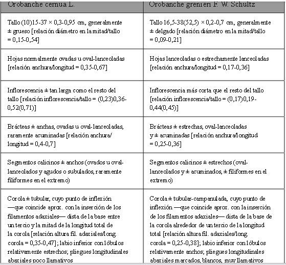 Получается, что у Orobanche grenieri соцветие относительно более короткое (но признаки перекрываются)