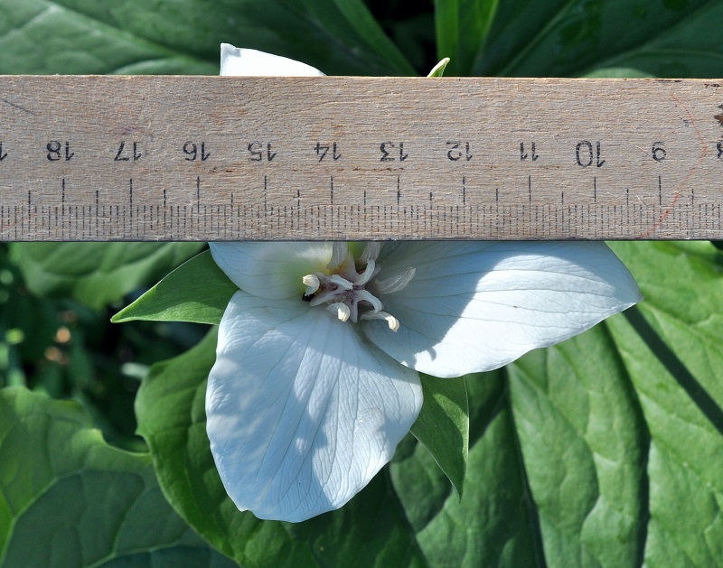 Я сделала предположение, что это американское растение, и прошлась по определителю здесь: http://www.efloras.org/florataxon.aspx?flora_id=1&taxon_id=133668#KEY-1-11. У меня получился Trillium flexipes, а после некоторых допущений - Trillium erectum var. album. Но картинки, имеющиеся в сети на оба вида, не совсем похожи на моё растение. |