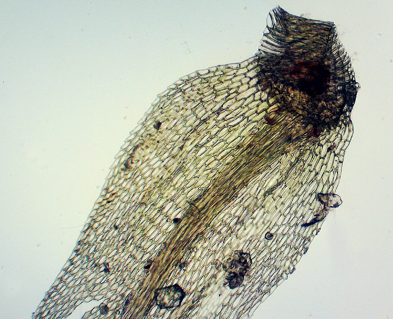 | Денис Мирин | По фотографии основания листа кажется, что нижние клетки увеличенные. Если есть в основании вздутые клетки и стеблевые листья широко низбегающие (веточные могут не иметь низбегания, мельче, иногда сильно мельче стеблевых листьев), а кроме того часто (но не всегда) на стебле относительно обильны парафиллии (как мелкие желтоватые чешуйки порядка 10 клеток длиной), то это Cratoneuron filicinum. У Hygroamblystegium tenax листья не низбегающие, парафиллии единичные, в основании листьев клетки квадратные.
