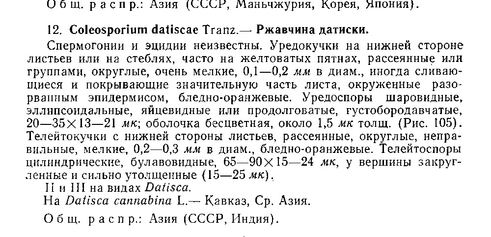 Листочек (вид снизу), поражённый ржавчинным грибом (вероятно, Coleosporium datiscae). Краснодарский край, Абинский р-н, ст-ца Холмская, берег р. Хабль. 14.09.2016.