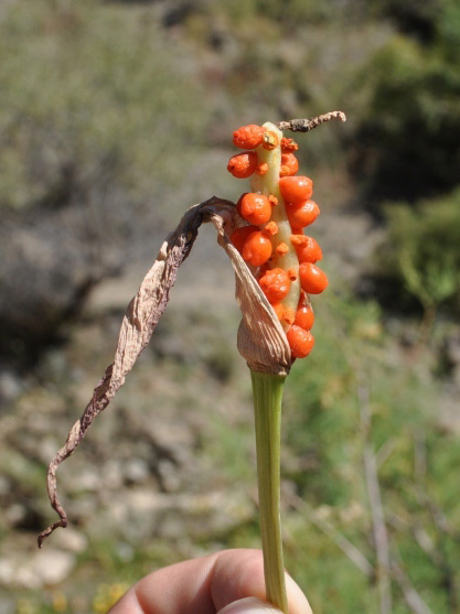 | Михаил Серебряный | Не факт. Цветонос может значительно вытягиваться в фазе плодоношения. Для доказательного определения необходимы фотографии цветущего растения. И не только видов Arum |