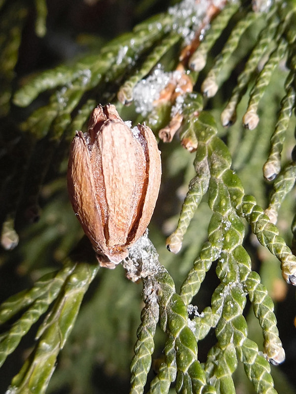 Верхушки ветвей с микростробилами. Марий Эл, г. Йошкар-Ола, Центральный парк, в озеленении. 13.12.2016.