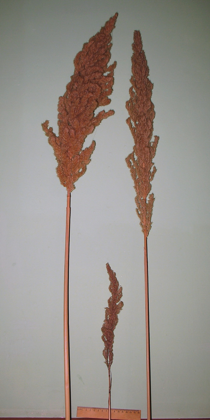 Арундо тоже растёт в бийликольской котловине, знаю отсюда только две небольшие разреженные популяции, но растёт он далеко от озера и на сухих местах вдоль дренажных канавок. Арундо выглядит роскошно. Здесь пара метёлок арундо с этих же мест и заодно для сравнения метёлочка Eranthus ravennae.