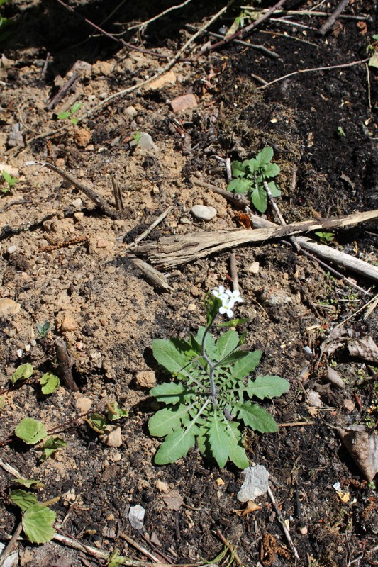 Прикорневая розетка листьев и основание цветоноса. Беларусь, Минская обл., Минский р-н, ост. Ждановичи, пустырь между обочиной грунтовой дороги и ольховой болотистой рощей. 05.06.2016.