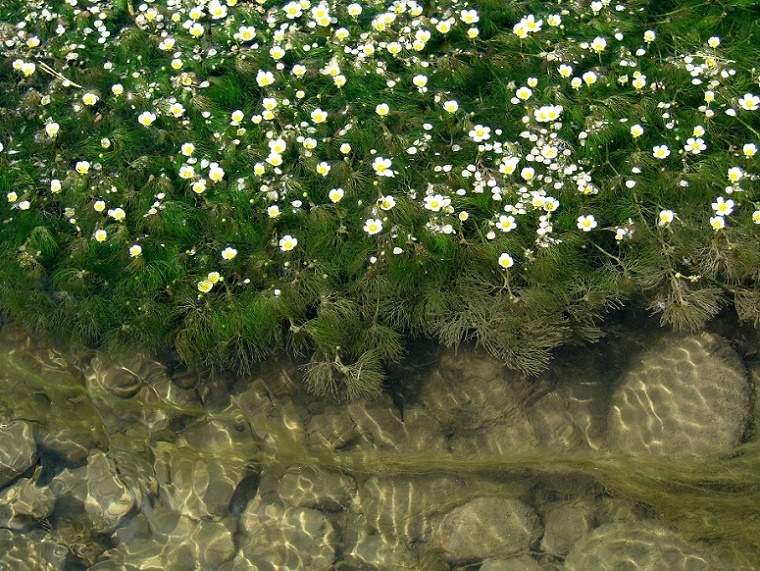 Побеги с цветками. Иркутская обл., Шелеховский р-н, окр. с. Шаманка, в русле р. Иркут, на мелководье. 08.07.2016.