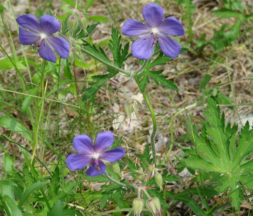 | Александр Эбель | Опушение не видно, но судя по рассечённости листьев - Geranium sergievskajae (Peschkova) Troshkina (=G. pratense subsp. sergievskajae Peschkova).
