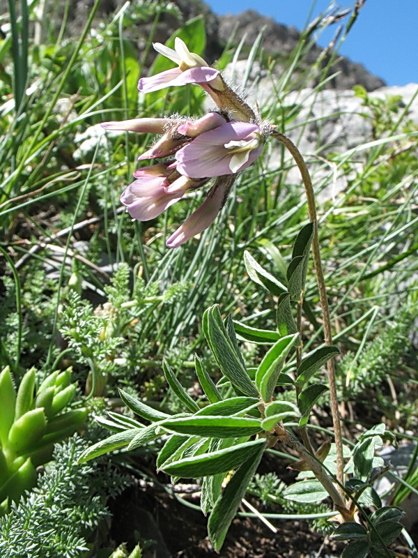 | Владимир Колбинцев | Это кустарничек с деревянистыми стеблями (см. также сцепленные фото). У меня он идет очень близко к астрагалу Федченко. Астрагал Липшица - это вид с желтым венчиком из пустынных пестроцветных низкогорий Закаратавской равнины (р-он оз. Ащиколь). А здесь настоящая альпика. |