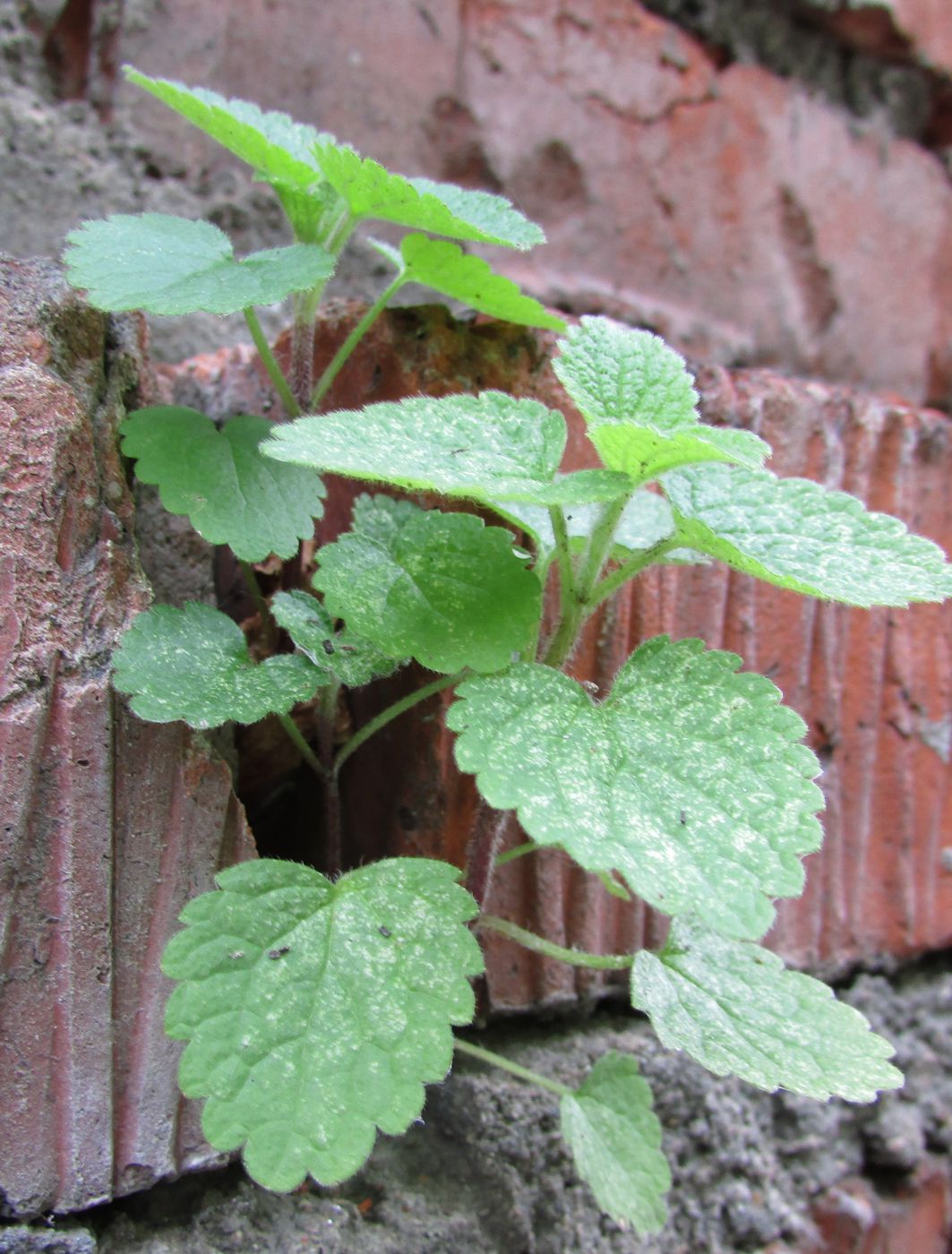 Вегетирующее растение. Москва, ул. Малая Семёновская, старая кирпичная стена. 03.07.2017.