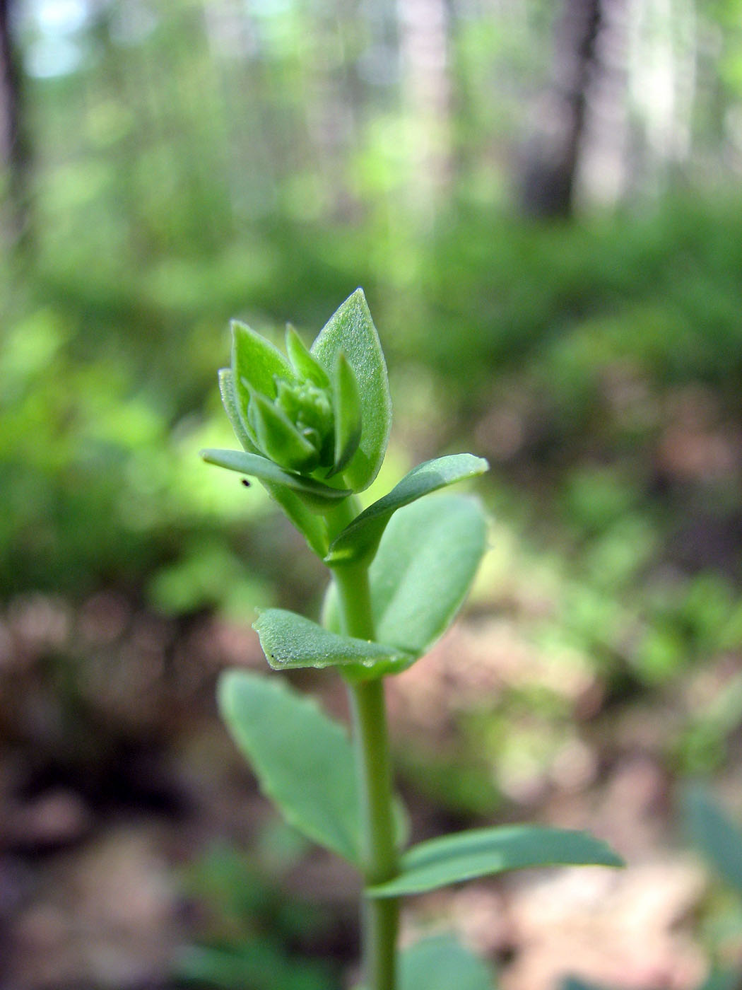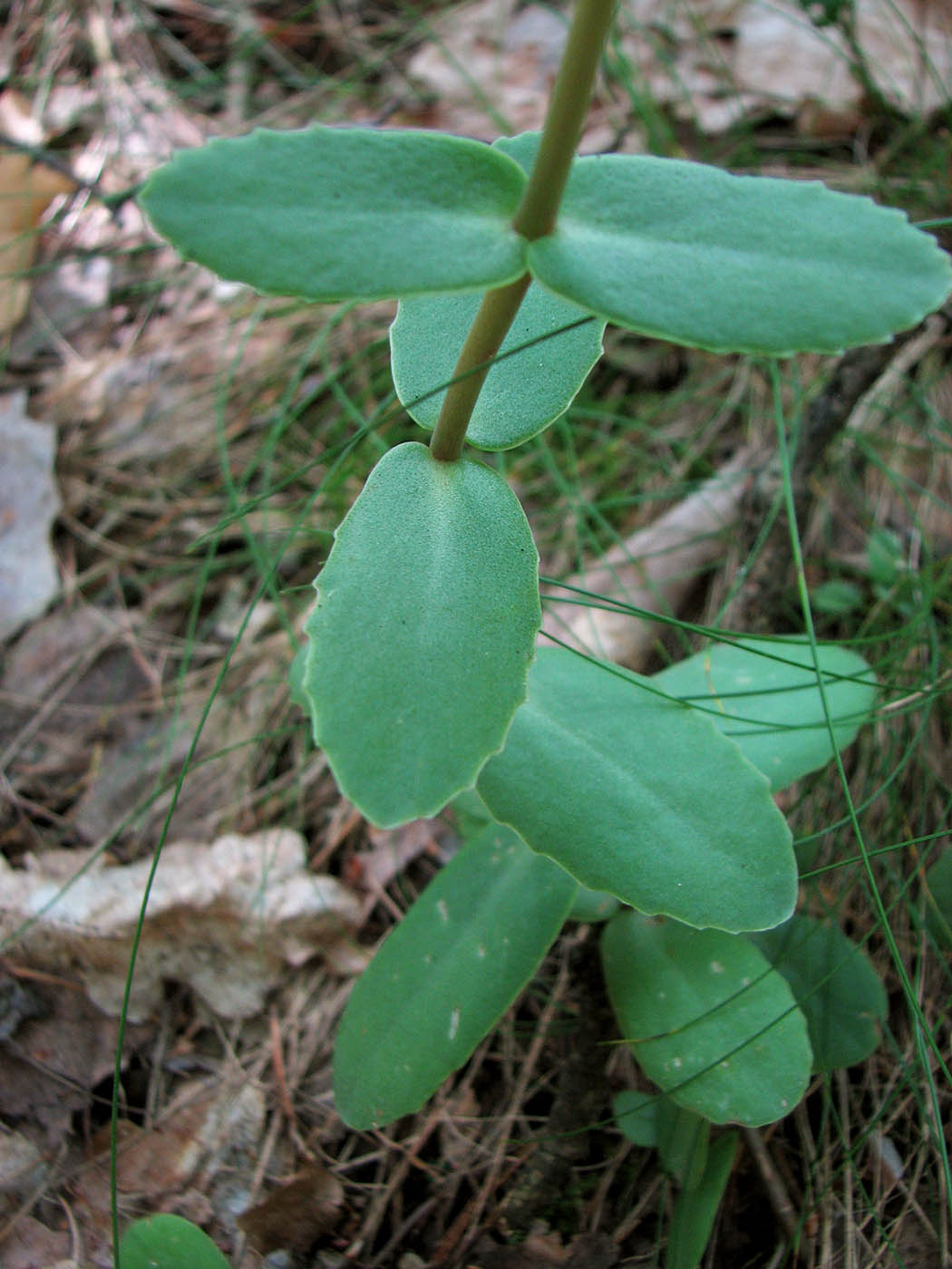 Часть побега (видна нижняя сторона листовой пластинки). Украина, Житомирская обл., Новоград-Волынский р-н, окраина с. Малая Цвиля, сосняк. 25.06.2017.