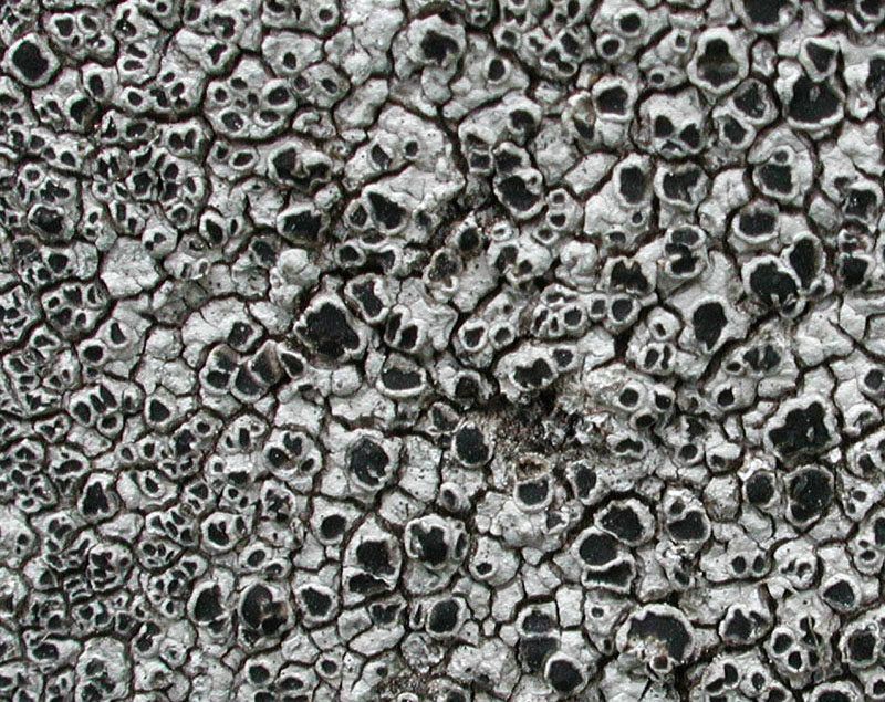 | Игорь Евдокимов | Этот вид очень распространен и является одним из преобладающих среди корковых лишайников данного района в условиях частичной освещенности. Обитает исключительно на гранитных скалах в виде "кокард" от 3 до 15 см в диаметре. Встречается нечеткое концентрическое строение. Характерны скопления соприкасающихся апотеций типа глубоких "тарелочек" (или - "крупные апотеции с ячейками"). Под верхним беловатым слоем в надрезе находится слой с изумрудно-зелеными включениями водорослей. При глубоком надрезе лишайник крошится, видны коричневато-желтые нижние слои. Три пробы окрашивания царапин NaOH в засушливый период вызвали красно-коричневый цвет через 1мин.