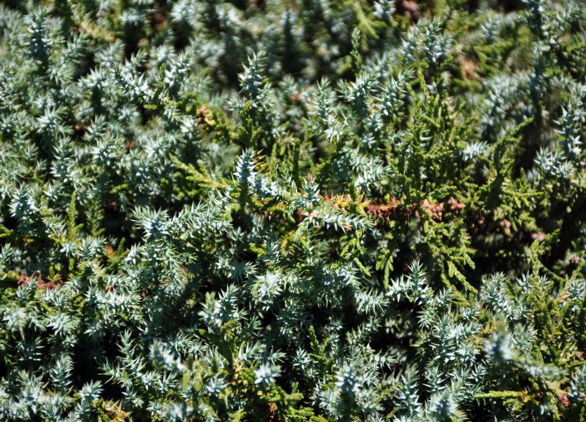 Вегетирующие растения (сизый оттенок обусловлен обилием ювенильной хвои). Таджикистан, Фанские горы, ущелье Куликалон, ≈ 2700 м н.у.м., сухой склон. 05.08.2017.
