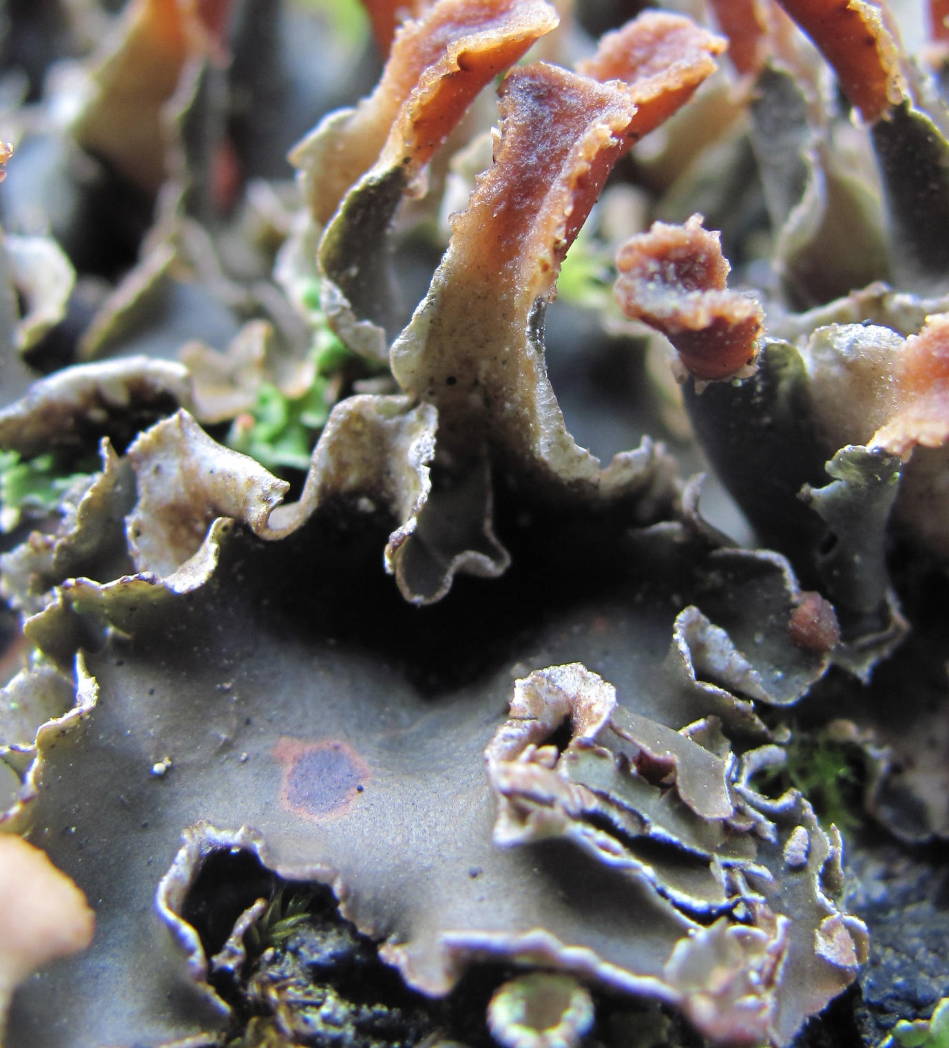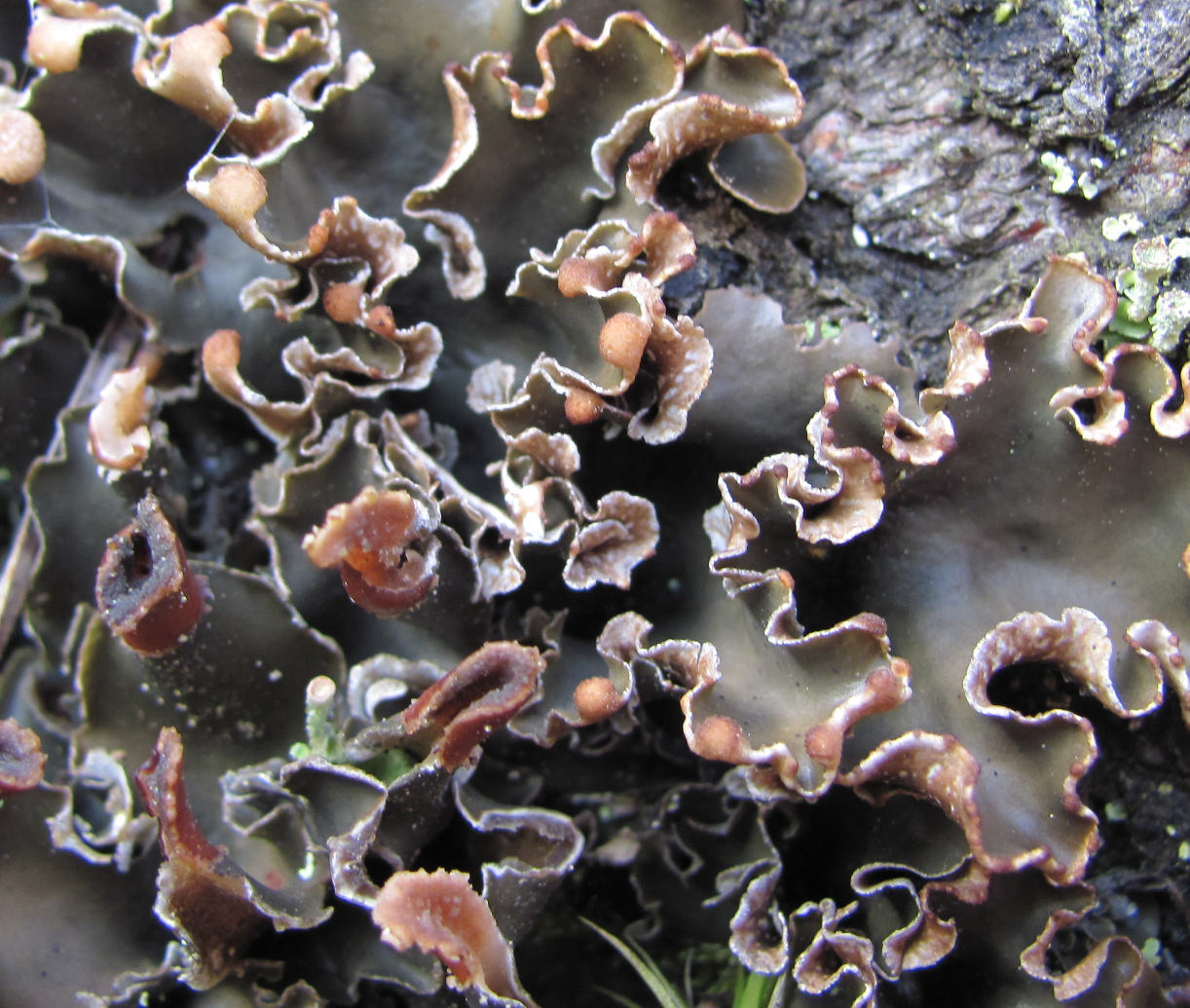 Часть таллома с апотециями. Кабардино-Балкария, Эльбрусский р-н, окр. пос. Эльбрус, ок. 1750 м н.у.м., возвышение на берегу р. Баксан. 24.08.2017.