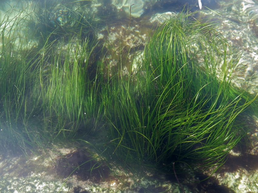 Растение в морской воде на подводных камнях. Приморский край, Японское море, у берегов о. Фуругельма. 15.07.2017.