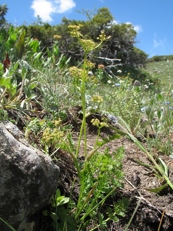 Цветущие растения. Южный Казахстан, Таласский Алатау, запов. Аксу-Джабаглы, пер. Улькен-Каинды, 2740 м н.у.м., скальный гребень водораздел, в тени под стенкой сев. экспозиции. 11 июня 2017 г.