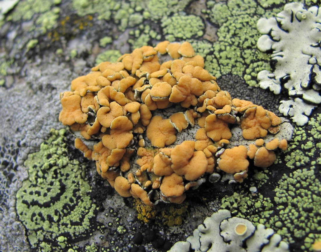 Таллом с апотециями. Кабардино-Балкария, Эльбрусский р-н, долина р. Адылсу, ок. 2100 м н.у.м., на большом камне. 23.08.2017.