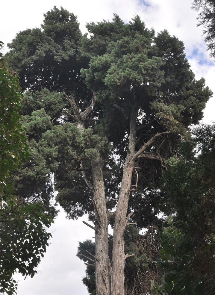 Стволы и кроны взрослых растений. Китай, Юньнань, пос. Шаси (Shaxi 沙溪), территория храма Синьтяо (Xing Jiao Temple). 25 октября 2016 г.