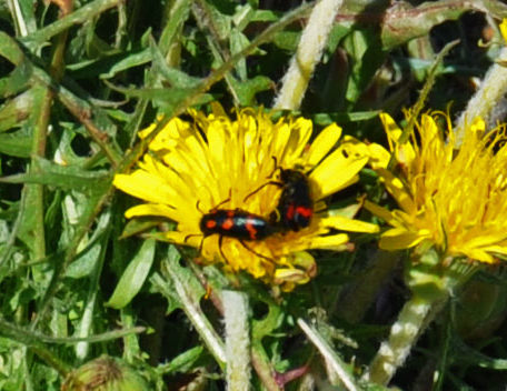| Владислав Григоренко | Нарывники тут - только два самых крупных жука справа. Жуки помельче в широкую поперечную полоску - вероятно пестряки (Cleridae), а самые мелкие, с двумя красными пятнышками на корме - малашки (Malachidae). Ещё тут и шмель присутствует. Знатный зоопарк, одним словом... 15 экземпляров, как минимум... |