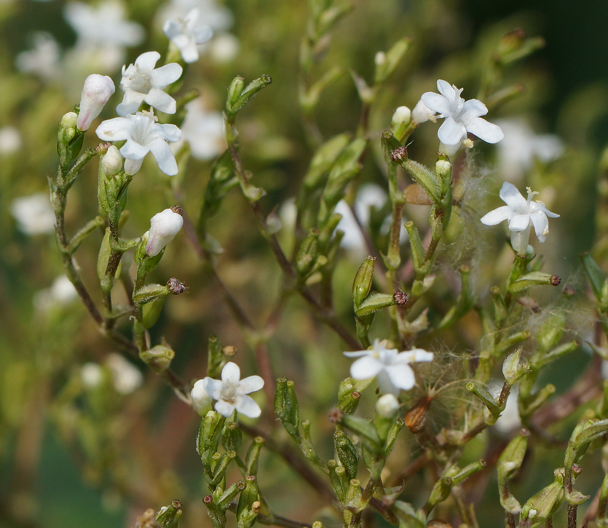 Веточки с цветками, бутонами и завязавшимися плодами. Восточный Казахстан, г. Усть-Каменогорск, восточные окр., Лесхоз, за оградой дачи у дороги. 04.08.2017.
