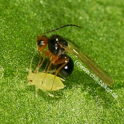 А тлюшка, возможно, заражена паразитом (из Aphidiidae) - cм. немецкую картинку
