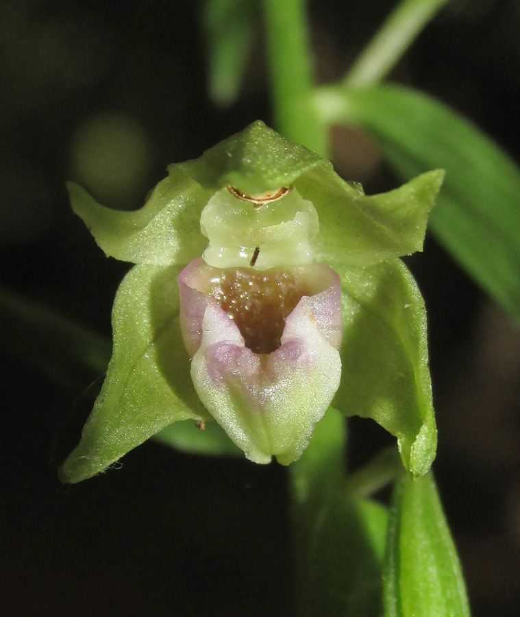 Цветок с аномально вывернутым эпихилием губы. Дагестан, Табасаранский р-н, 1 км к северо-востоку от с. Татиль, буковый лес. 21 июня 2018 г.